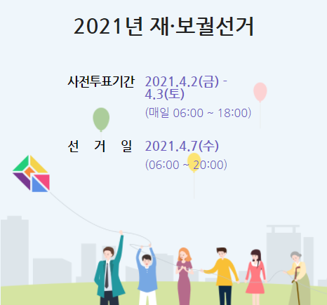 2021년 4월 7일부터 재보궐선거가 실시됩니다. 현재 오늘인 4월 2일부터 4월 3일까지 이틀 동안 재보궐선거 사전투표가 진행됩니다. 선거를 통해서 살기 좋은 지역으로 만들어 줄 수 있는 정책을 펼칠 수 있는 사람을 잘 뽑아서 잘 발달되면 좋겠네요.