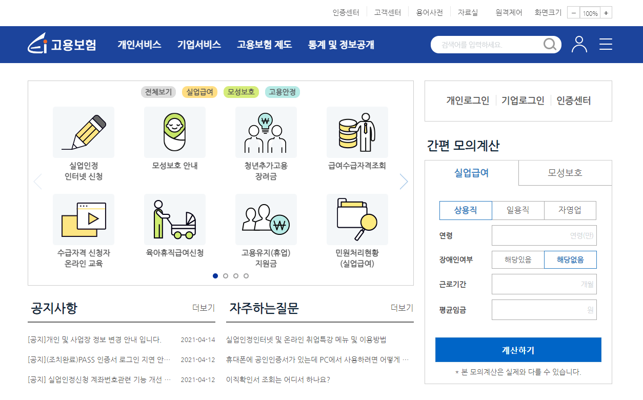 실업급여 / 모성보호 / 고용안정 / 청년추가고용 장려금 / 수급자격 신청 / 육아휴직급여 / 고용유지 지원금 / 고용보험 / 재직근로자
