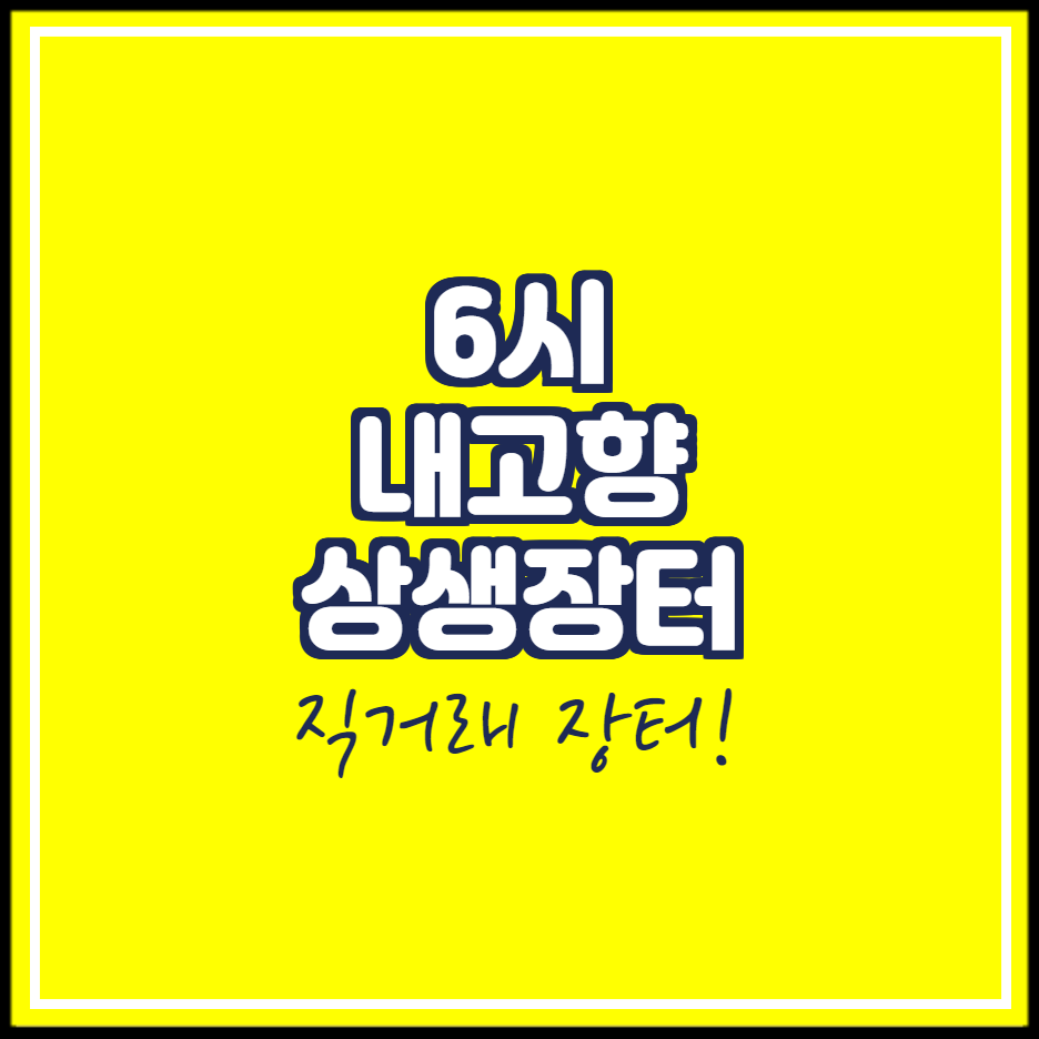 6시 내고향은 많은 분들이 아시는 그 프로그램이 맞습니다. KBS1에 매주 월~금 저녁 6시마다 방영되는 프로그램입니다. 정겨운 BGM은 자세히 보지 않았던 분들도 노래를 들으면 흥얼거릴 정도로 익숙합니다. 오늘은 6시 내고향 상생장터에 대해서 자세히 알아보도록 하겠습니다.